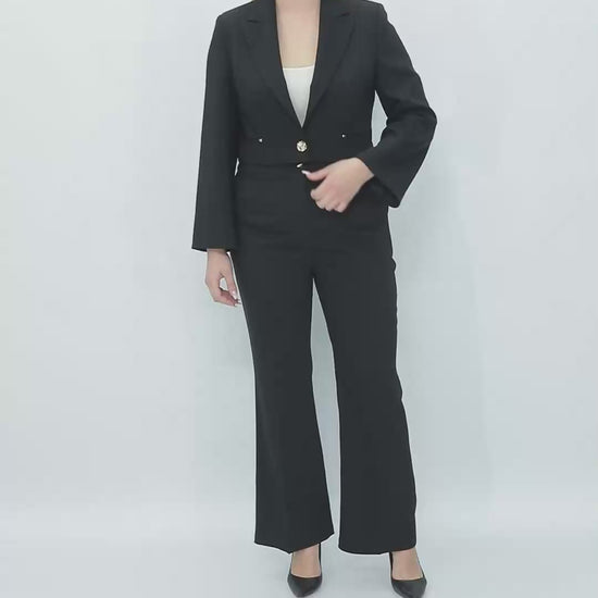Uzun Kollu Tek Düğmeli Ceket ve Pantolon İkili Kadın Takım