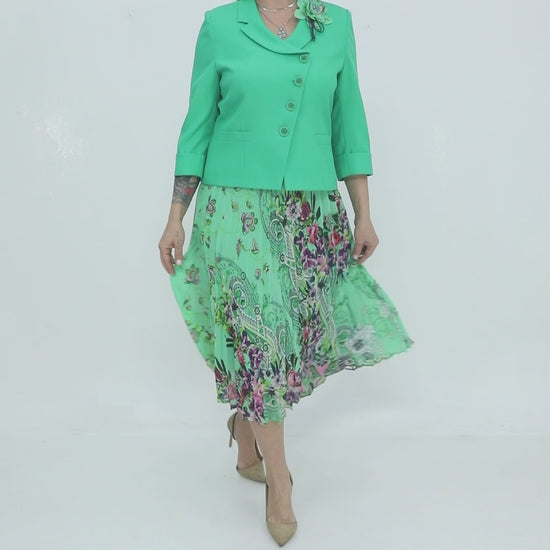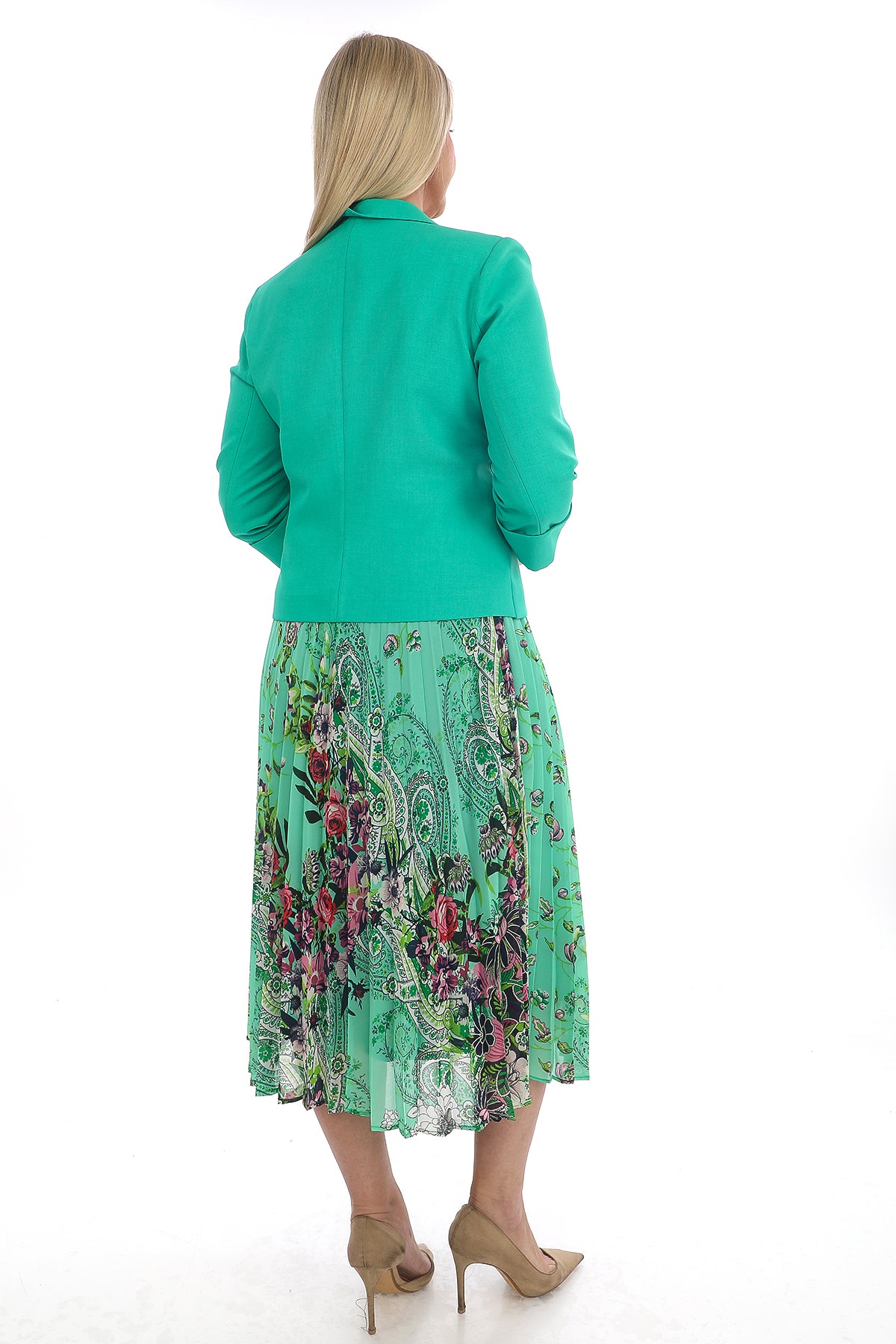 Yeşil Ceketli Desenli Etek Takımı